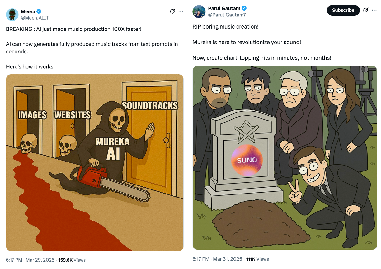 Mureka在多个社交媒体平台上收获了极高的人气。在YouTube、X等全球知名社交媒体平台上,#Mureka话题热度持续攀升,大量海外用户分享自己使用Mureka创作的音乐作品,这些作品风格多样,涵盖了流行、电子、摇滚、蓝调、古典等几十余种风格。