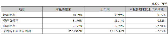 截至2024年末,东方盛虹资产负债率为81.66%,同比增长0.32个百分点。