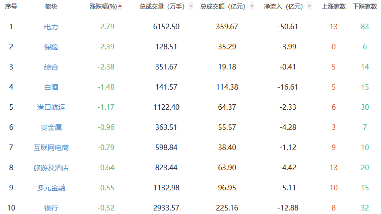 行业板块方面,美容护理、塑料制品、化学制品等板块涨幅居前,电力、保险、白酒等板块跌幅居前。