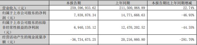 据公司2025年一季报,报告期内,公司实现营业收入2.60亿元,同比增长22.74%;归属于上市公司股东的净利润783.89万元,同比减少46.93%;归属于母公司所有者的扣除非经常性损益的净利润694.01万元,同比减少44.35%;经营活动产生的现金流量净额-3673.47万元,同比减少281.70%。