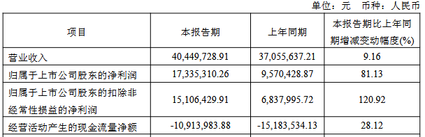 2025年一季度,公司实现营业收入4,044.97万元,同比增长9.16%;归属于上市公司股东的净利润为1,733.53万元,同比增长81.13%;归属于上市公司股东的扣除非经常性损益的净利润为1,510.64万元,同比增长120.92%;经营活动产生的现金流量净额为-1,091.40万元,上年同期为-1,518.35万元。