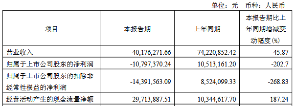 2025年1-3月,公司实现营业收入4,017.63万元,同比下降45.87%;归属于上市公司股东的净利润为-1,079.74万元,上年同期为1,051.32万元;归属于上市公司股东的扣除非经常性损益的净利润为-1,439.16万元,上年同期为852.41万元;经营活动产生的现金流量净额为2,971.39万元,同比增长187.24%。