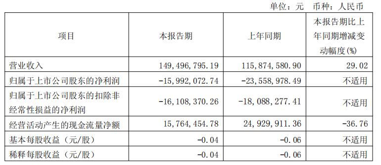 美迪凯发布的2025年第一季度报告显示,2025年第一季度,美迪凯实现营业收入1.49亿元,同比增长29.02%;归属于上市公司股东的净利润-1599.21万元,上年同期为-2355.90万元;归属于上市公司股东的扣除非经常性损益的净利润-1610.84万元,上年同期为-1808.83万元;经营活动产生的现金流量净额1576.45万元,同比减少36.76%。