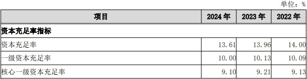 2024年末,广州银行资本充足率13.61%,上年末为13.96%;一级资本充足率10.00%,上年末为10.13%;核心一级资本充足率9.10%,上年末为9.21%。