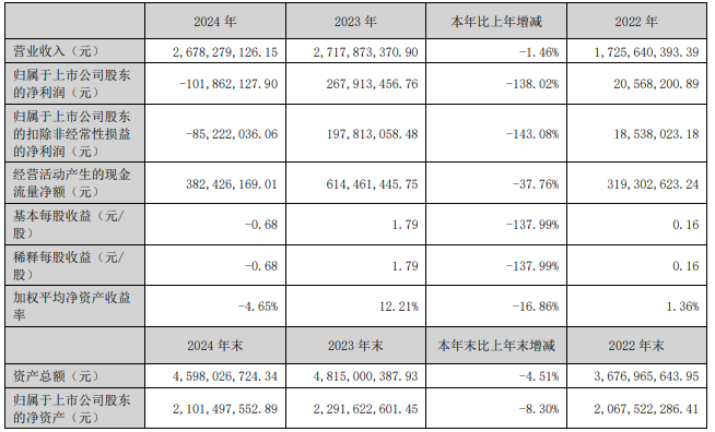 中国经济网北京5月16日讯 普瑞眼科(301239.SZ)2024年年度报告显示,普瑞眼科报告期内营业总收入为26.78亿元,同比下滑1.46%;归属于上市公司股东的净利润为-1.02亿元,去年同期为2.68亿元;归属于上市公司股东的扣除非经常性损益的净利润为-8522.20万元,去年同期为1.98亿元;经营活动产生的现金流量净额为3.82亿元。