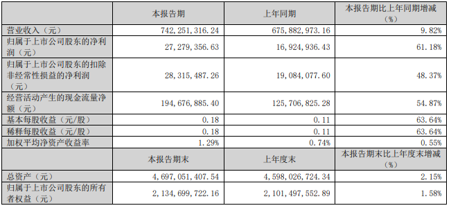 普瑞眼科2025年第一季度报告显示,普瑞眼科报告期内营业总收入为7.42亿元,同比增长9.82%;归属于上市公司股东的净利润为2727.94万元,同比增长61.18%;归属于上市公司股东的扣除非经常性损益的净利润为2831.55万元,同比增长48.37%;经营活动产生的现金流量净额为1.95亿元。