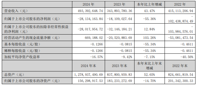 滨海能源2024年年度报告显示,滨海能源报告期内营业总收入为4.93亿元,同比增长43.47%;归属于上市公司股东的净利润为-2813.42万元,去年同期为-1810.90万元;归属于上市公司股东的扣除非经常性损益的净利润为-2801.80万元,去年同期为-3214.62万元;经营活动产生的现金流量净额为66.92万元。