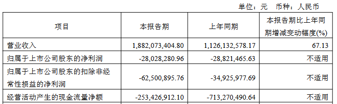 2025年1-3月,公司实现营业收入18.82亿元,同比增长67.13%;归属于上市公司股东的净利润为-2,802.83万元,上年同期为-2,882.15万元;归属于上市公司股东的扣除非经常性损益的净利润为-6,250.09万元,上年同期为-3,492.60万元;经营活动产生的现金流量净额为-2.53亿元,上年同期为-7.13亿元。