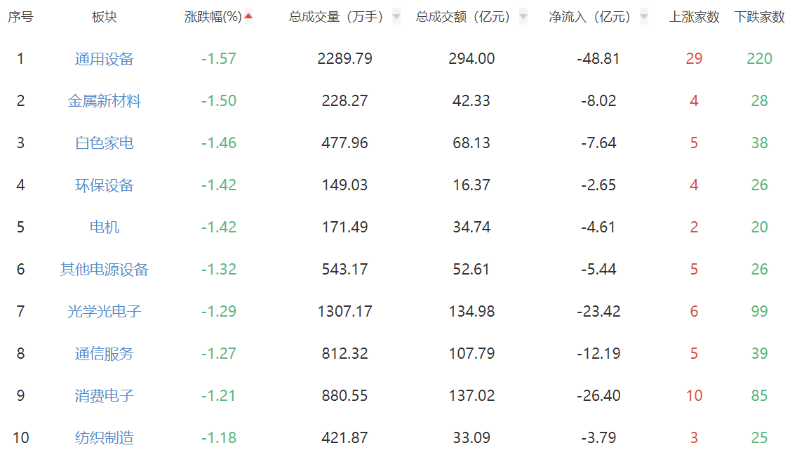 板块方面,非金属材料、贵金属、电池等板块涨幅居前,通用设备、金属新材料、白色家电等板块跌幅居前。