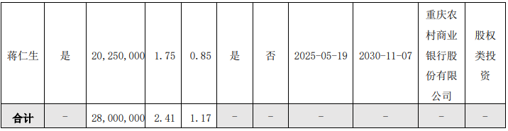 公告显示,蒋仁生将其持有的智飞生物2800.00万股股份进行质押,质押用途为股权类投资,本次质押占其所持股份比例为2.42%,占公司总股本比例为1.17%。质押起始日为2025年5月19日,质押到期日为2028年5月17日。