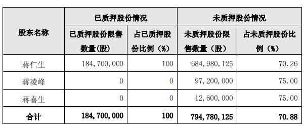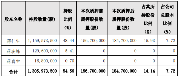 截至公告披露日,公司控股股东、实际控制人蒋仁生持有智飞生物11.60亿股股份,持股比例为48.44%。本次质押前,蒋仁生已经累计质押1.57亿股;本次股票质押后,蒋仁生累计质押智飞生物股份1.85亿股,占其持股比例的15.93%。