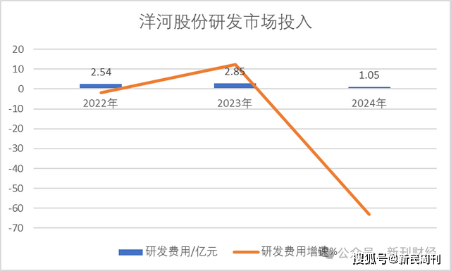 洋河的研发投入呈现明显收缩态势,2022-2024年间,公司研发费用从2.54亿元小幅增长至2.85亿元后,在2024年骤降至1.05亿元,同比降幅达63.2%,呈现断崖式下跌。