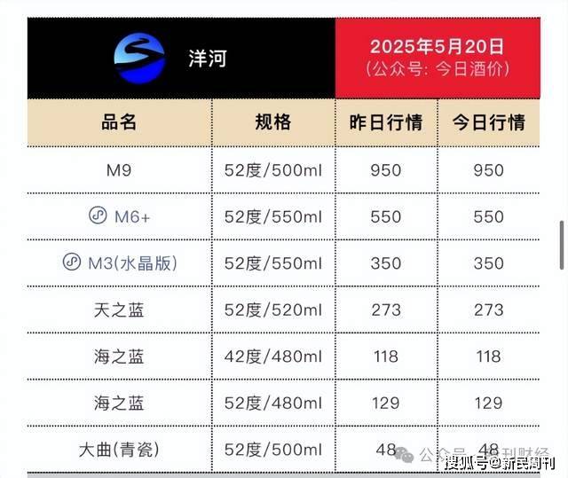 此外,电商平台价格监测显示,洋河股份部分产品正面临价格倒挂困境。某电商平台5月20日售价显示,梦之蓝M9券后价已跌破731元/瓶,较批发价低出逾23%;两瓶装天之蓝促销价低至529元(合264.5元/瓶),较273元的批发参考价形成明显倒挂。