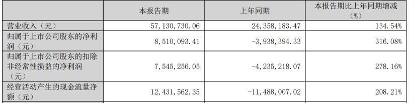 2025年第一季度,艾布鲁实现营业收入5713.07万元,同比增长134.54%;归属于上市公司股东的净利润851.01万元,上年同期为-393.84万元;归属于上市公司股东的扣除非经常性损益的净利润754.53万元,上年同期为-423.52万元;经营活动产生的现金流量净额1243.16万元,上年同期为-1148.80万元。