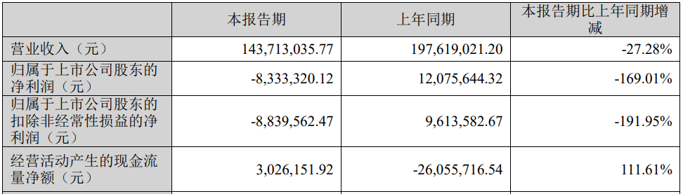 今年一季度,安奈儿实现归属于上市公司股东的净利润为-833.33万元。