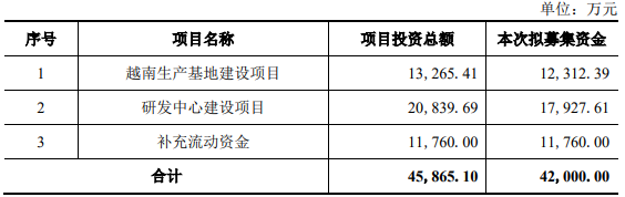 显盈科技2025年5月16日披露的向不特定对象发行可转换公司债券募集说明书(申报稿) 显示,公司本次发行可转债拟募集资金总额(含发行费用)不超过人民币27,000.00万元(含本数),本次发行可转债募集的资金总额扣除发行费用后投资于以下项目:越南生产基地建设项目、研发中心建设项目、补充流动资金。