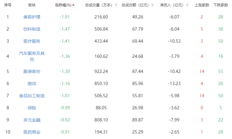 板块方面,贵金属、通信服务、农化制品等板块涨幅居前,美容护理、饮料制造、医疗服务等板块跌幅居前。