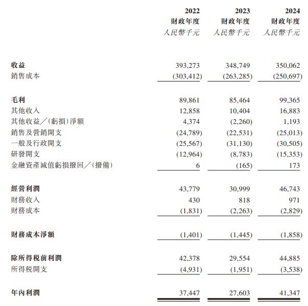 2022年、2023年、2024年,容大科技收益分别为3.93亿元、3.49亿元、3.5亿元;年内利润分别为3744.7万元、2760.3万元、4134.7万元。