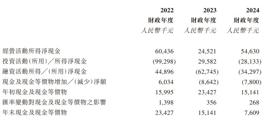 2022年、2023年、2024年,容大科技经营活动所得净现金分别为6043.6万元、2452.1万元、5463万元。