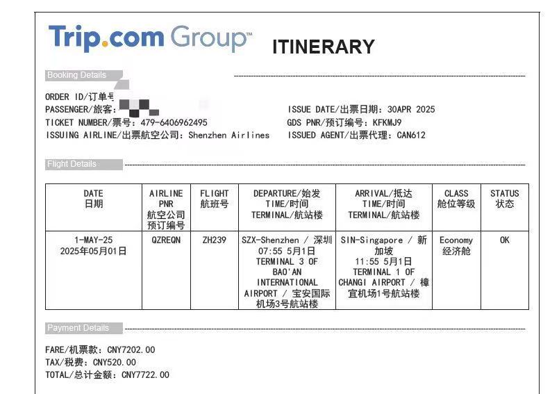 “按照行程单信息到了机场才发现,原航班早已被取消,新航班已经起飞,无奈之下只能重新购买次日的高价机票。”近日,深圳的高女士向读特新闻报料称,其在去哪儿平台购买了酷航的往返航班。原定去程为4月30日22时起飞,由于航班变动,改为4月30日19时起飞。高女士称,因未收到平台通知及行程单信息的持续误导而错过了航班,给她造成了至少8000元的损失。