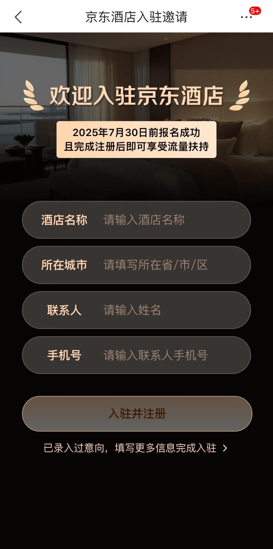 京东酒店入驻邀请页面