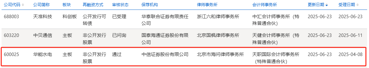 华能水电不超58.25亿定增获上交所通过 中信证券建功