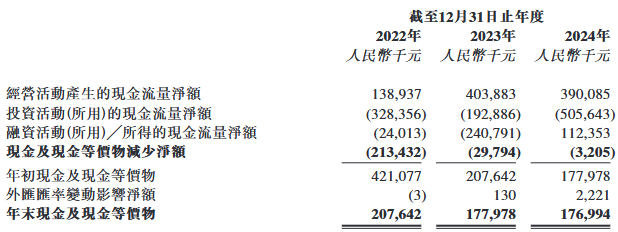 上述同期,经营活动产生的现金流量净额分别为人民币138.9百万元、人民币403.9百万元、390.1百万元。