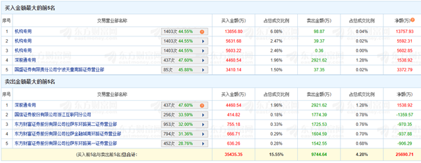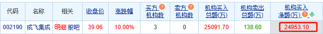 龙虎榜数据显示,买入成飞集成金额最大的前五名中,有3家机构专用席位。经统计,成飞集成机构席位今日买入净额为24953.10万元。