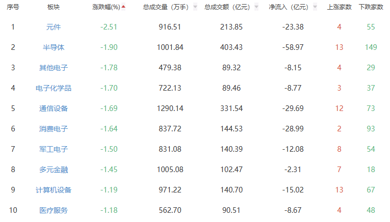 板块方面,养殖业、光伏设备、工业金属等板块涨幅居前,元件、半导体、其他电子等板块跌幅居前。