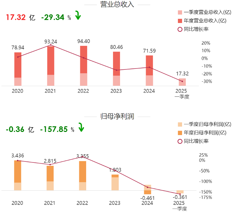 财报显示,2024年全年,良品铺子营业收入下滑,归母净利润更是亏损0.46亿元,遭遇上市后首度年度亏损。进入2025年,颓势未改。今年一季度,公司营收同比下滑29.34%,归母净利润更是下滑157.85%。面对压力,公司也使出浑身解数自救,可惜效果似乎不太理想。