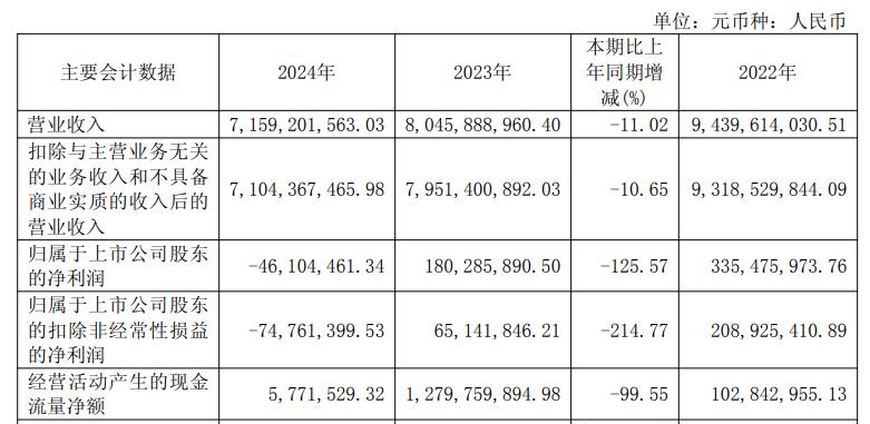 2024年,良品铺子实现营业收入71.59亿元,同比下降11.02%;归属于上市公司股东的净利润-4610.45万元,上年同期为1.8亿元;归属于上市公司股东的扣除非经常性损益的净利润-7476.14万元,上年同期为6514.18万元;经营活动产生的现金流量净额为577.15万元,同比下降99.55%。