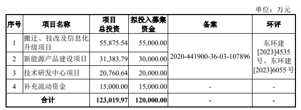 正扬科技原拟募集资金120,000.00万元,分别用于搬迁、技改及信息化升级项目、新能源产品建设项目、技术研发中心项目、补充流动资金。