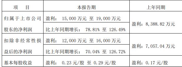 据公司2025年半年度业绩预告,报告期内,归属于上市公司股东的净利润预计盈利15,000万元至19,000万元,比上年同期增长78.81%至126.49%;扣除非经常性损益后的净利润预计盈利12,000万元至16,000万元,比上年同期增长70.04%至126.72%。
