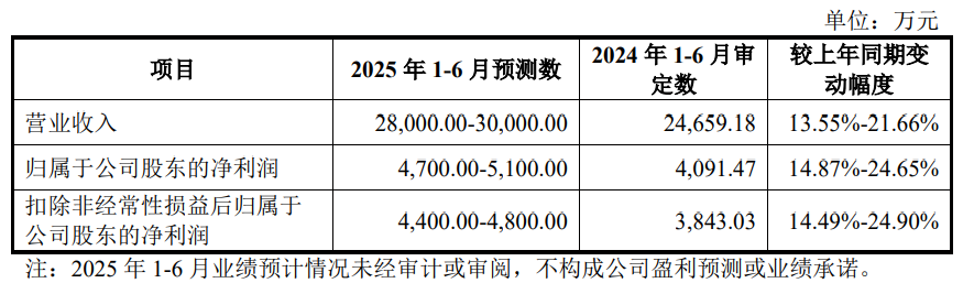 山大电力预计2025年1-6月的营业收入为28,000.00万元至30,000.00万元,变动幅度13.55%至21.66%;归属于公司股东的净利润4,700.00万元至5,100.00万元,变动幅度14.87%至24.65%;扣除非经常性损益后归属于公司股东的净利润4,400.00万元至4,800.00万元,变动幅度14.49%至24.90%。