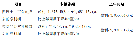 2025年半年度业绩预告显示,公司预计今年上半年实现归属于上市公司股东的净利润1,375.49万元至1,681.15万元,比上年同期下降45%至55%;扣除非经常性损益后的净利润714.48万元至952.64万元,比上年同期下降60%至70%。