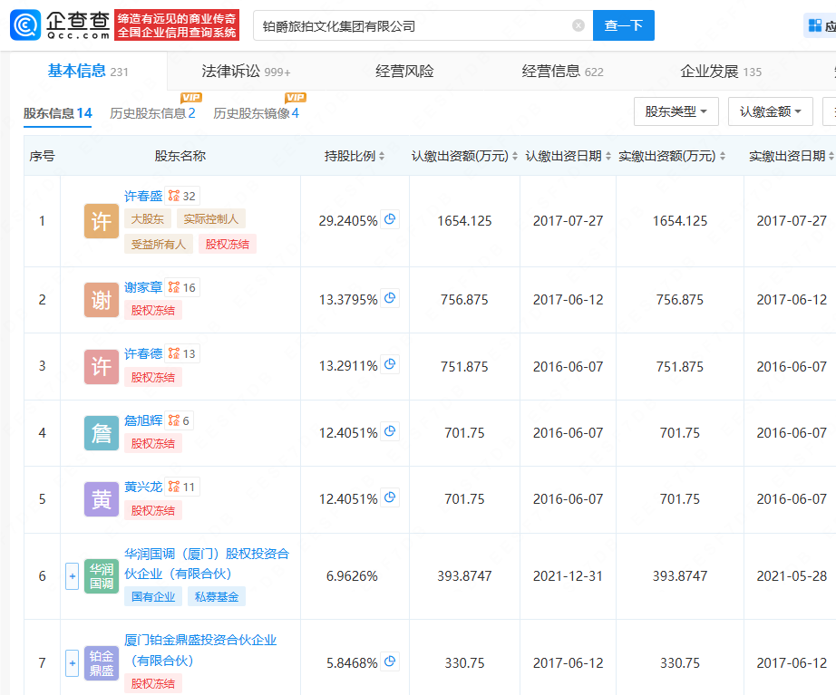 企查查显示,当前铂爵旅拍及其多位股东因股权转让纠纷已被起诉。该案件计划将于2025年9月2日,在福建省厦门市湖里区人民法院开庭审理。(信网记者)