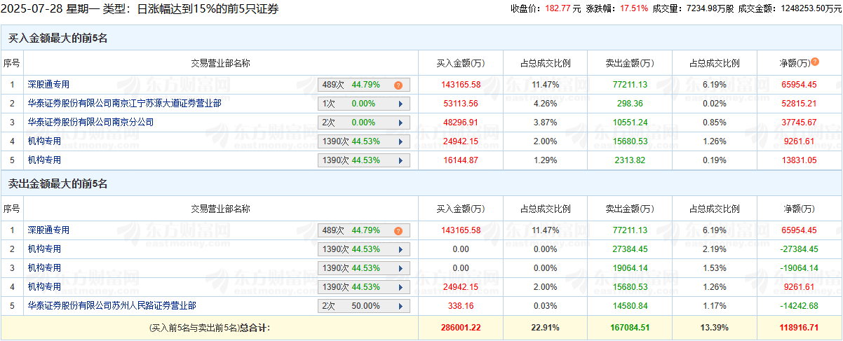 胜宏科技涨17.51% 机构净卖出2.34亿元