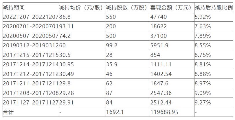 据新浪财经,数据显示,曹晓春最初持股517.01万股,占总股本的9.68%。曹晓春从2017年11月27日起,第一次减持泰格医药股份,迄今为止,累计减持公司股票1692.1万股,累计套现约11.97亿元。曹晓春此前减持已套现超11.97亿元,叠加本次减持,将累计减持13.86亿元。