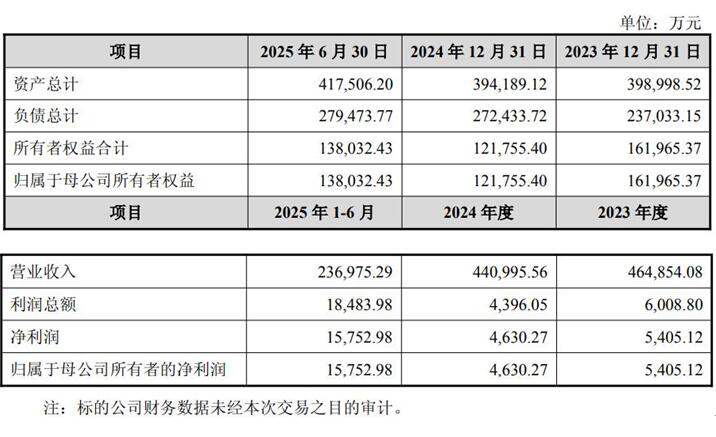 2023年、2024年、2025年1-6月,南通星辰实现营业收入分别为464,854.08万元、440,995.56万元、236,975.29万元;归属于母公司所有者的净利润分别为5,405.12万元、4,630.27万元、15,752.98万元。