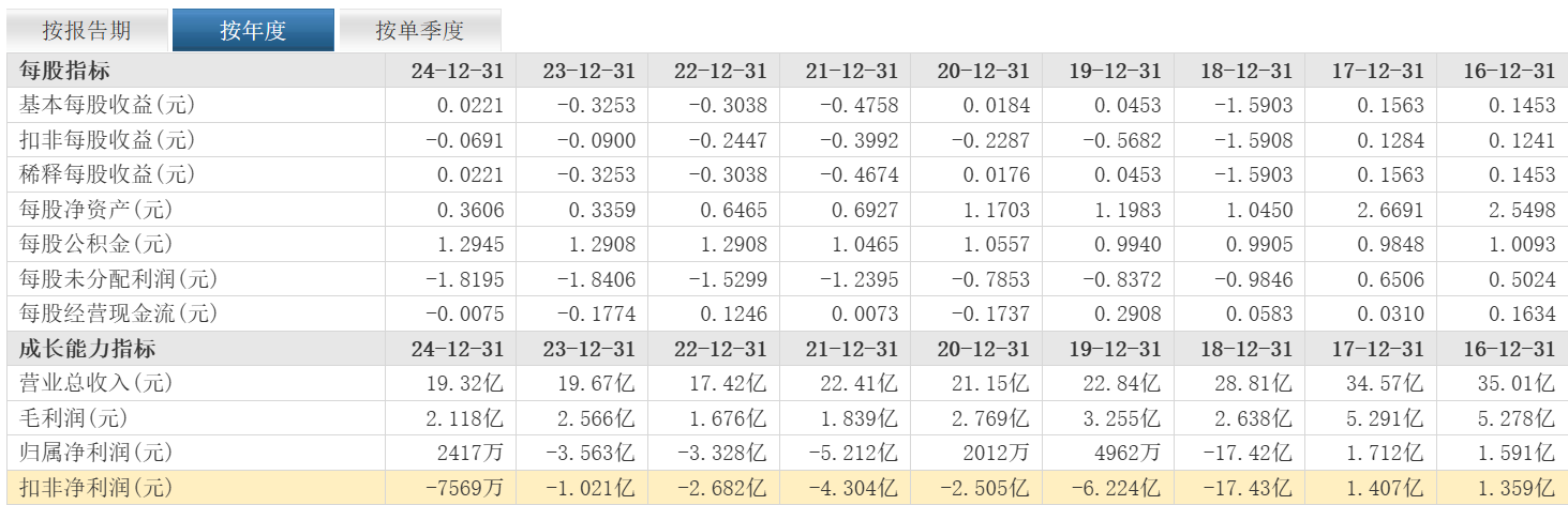 达华智能的扣非净利润已连亏7年。2018年至2024年,达华智能扣非净利润分别为 -17.43亿元、-6.22亿元、-2.51亿元、-4.30亿元、-2.68亿元、-1.02亿元和-7569万元。