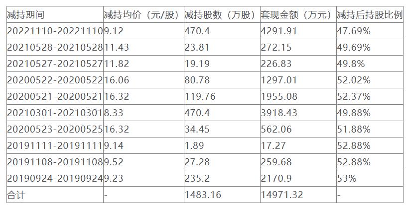 据新浪财经,按照7月29日收盘价10.86元测算,套现金额约合5108.54万元。数据显示,林肖芳最初持股6480万股,占总股本的54.00%。林肖芳从2019年9月24日起,第一次减持安记食品股份,迄今为止,累计减持公司股票1483.16万股,累计套现约1.5亿元。