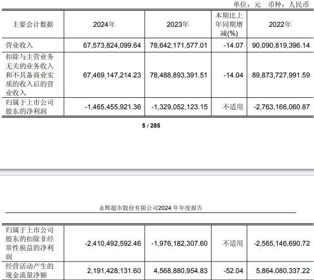 据公司2024年年报,报告期内,公司实现营业收入675.74亿元,同比减少14.07%;归属于上市公司股东的净利润-14.65亿元,2023年为-13.29亿元,2022年为-27.63亿元,2021年为-39.44亿元,已连续4年半出现亏损;扣除非经常性损益后的净利润-24.10亿元,2023年为-19.76亿元;经营活动产生的现金流量净额21.91亿元,同比减少52.04%。