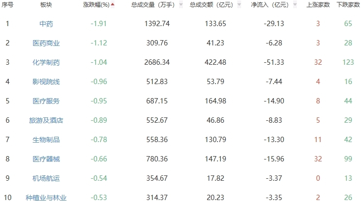 板块方面,军工装备、军工电子、橡胶制品等板块涨幅居前,中药、医药商业、化学制药等板块跌幅居前。