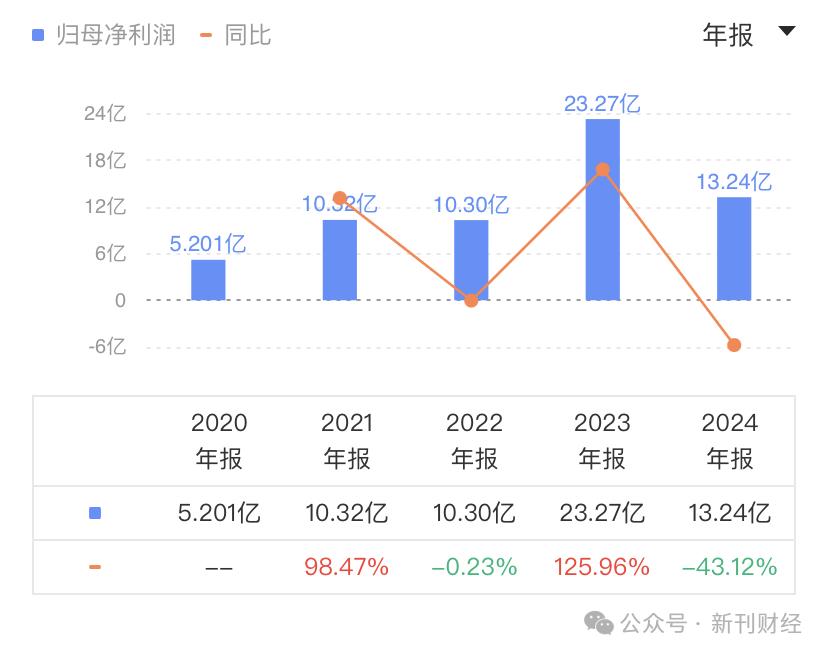 业绩数据显示,珍酒李渡正面临增长瓶颈。2024年公司营收70.67亿元,同比微增0.52%,增速较2021-2023年的三位数及双位数增长明显放缓。盈利能力更是不容乐观,营业利润同比下滑10.27%至18.94亿元,归母净利润更是骤降43.12%至13.24亿元,打破了2023年的复苏势头。