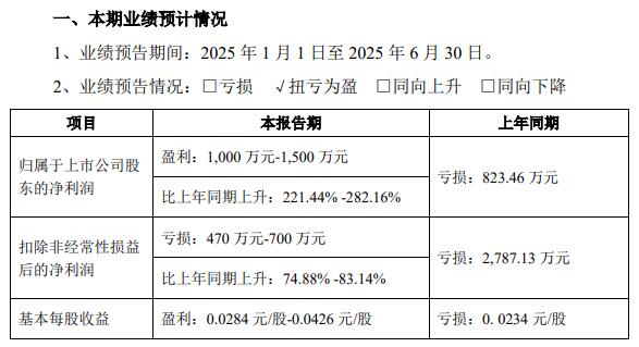 海得控制2025年半年度业绩预告显示,预计2025年上半年归母净利润1000万元至1500万元,上年同期亏损823.46万元;扣非净利润亏损470万元至700万元,上年同期亏损2787.13万元。