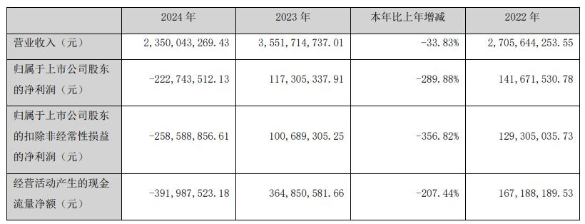 2024年,海得控制实现营业收入23.5亿元,同比下降33.83%;归母净利润亏损2.23亿元,上年同期盈利1.17亿元;扣非净利润亏损2.59亿元,上年同期盈利1.01亿元;经营活动产生的现金流量净额为-3.92亿元,上年同期为3.65亿元。