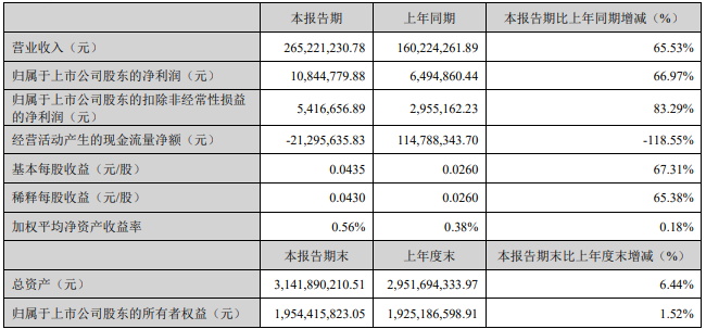 光库科技2025年半年度业绩预告显示,预计上半年归属于上市公司股东的净利润为盈利4,856万元至5,463万元,比上年同期增长60%至80%;扣除非经常性损益后的净利润为盈利3,890万元至4,369万元,比上年同期增长63%至83%。