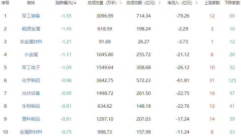 行业板块方面,多元金融、燃气、半导体等板块涨幅居前,军工装备、能源金属、非金属材料等板块跌幅居前。