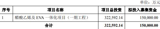 本次向特定对象发行股票的募集资金总额不超过150,000.00万元(含本数),扣除发行费用后的募集资金净额将用于醋酸乙烯及EVA一体化项目(一期工程)。