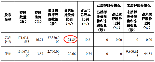 截至公告披露日,志鸿教育持有公司股份171,031,555股,占公司总股本比例46.71%。